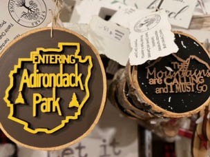You will find novelty Christmas ornaments, fragrant candles, and gifts to put aside for an Adirondack Christmas gift..